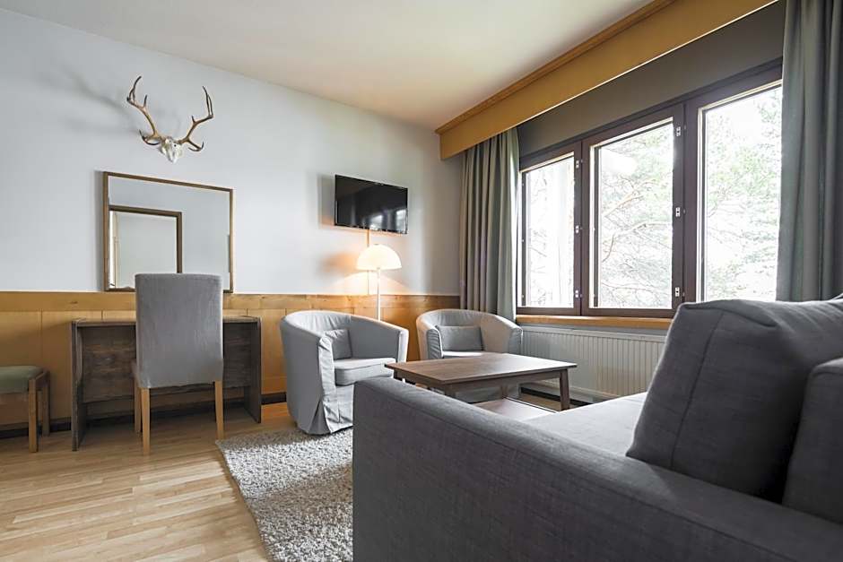 This suite features a sauna. This air-conditioned suite features 1 living room, 1 separate bedroom and 1 bathroom with a shower. The suite has parquet floors, a seating area with a flat-screen TV, a wardrobe, an electric kettle as well as lake views. The unit has 3 beds.